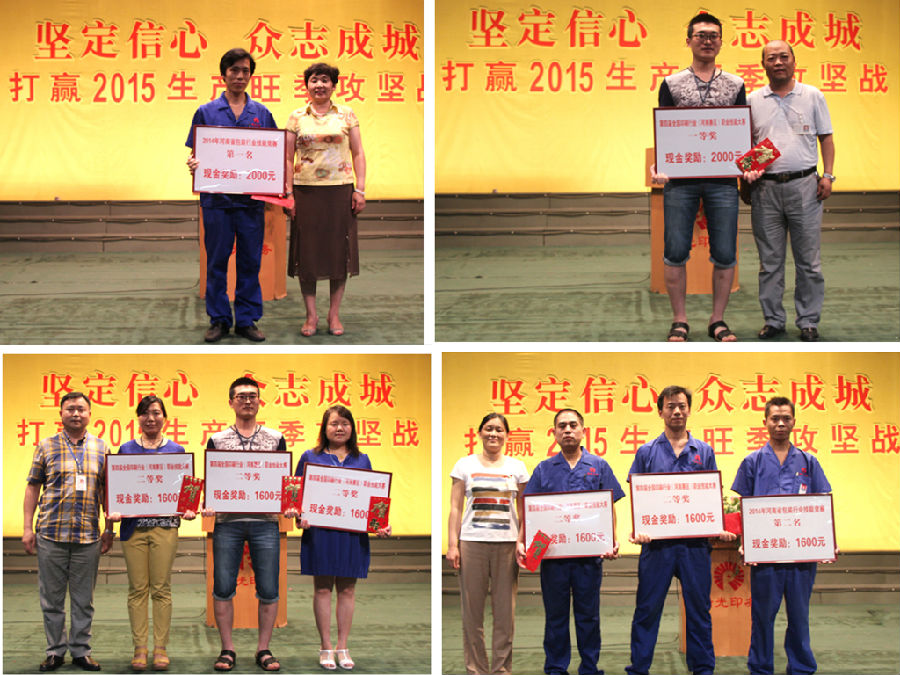 第三項,瑞之光集團領(lǐng)導(dǎo)及瑞光印務(wù)領(lǐng)導(dǎo)為“第四屆全國印刷行業(yè)職業(yè)技能大賽”和“2014河南省包裝行業(yè)平版印刷工、印前制作員、印品整飾員技能競賽”獲獎?wù)哳C發(fā)獎金。