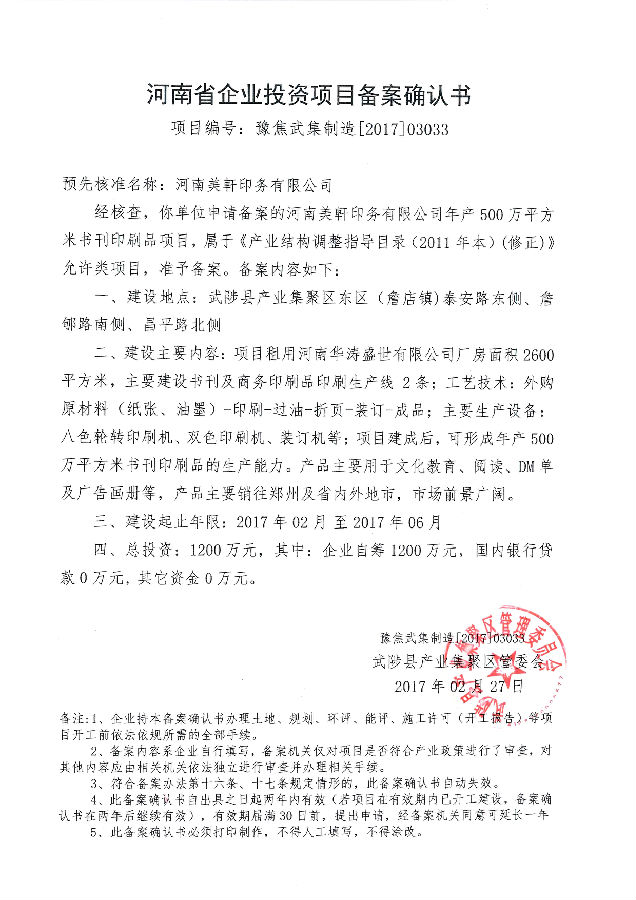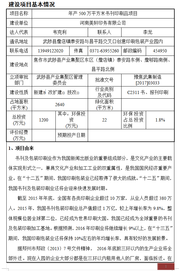 河南美軒印務(wù)有限公司年產(chǎn)500萬平方米書刊印刷品項(xiàng)目