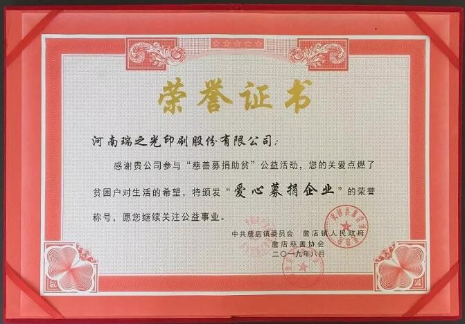 瑞之光印刷公司積極參與慈善募捐活動(dòng)