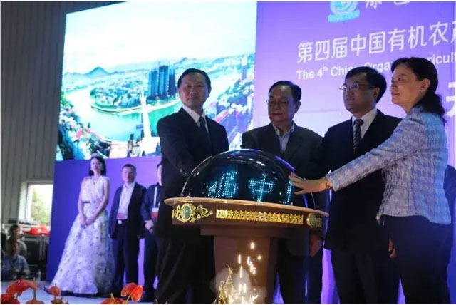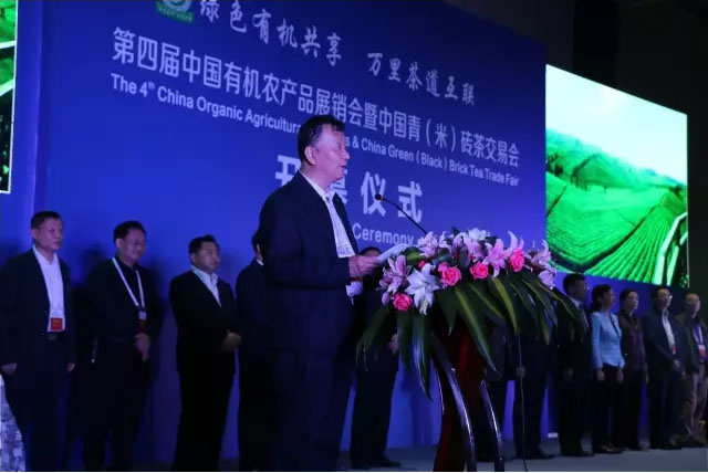 領(lǐng)導(dǎo)們共同為第四屆中國有機(jī)農(nóng)產(chǎn)品展銷會暨中國青(米)磚茶交易會啟動開幕球