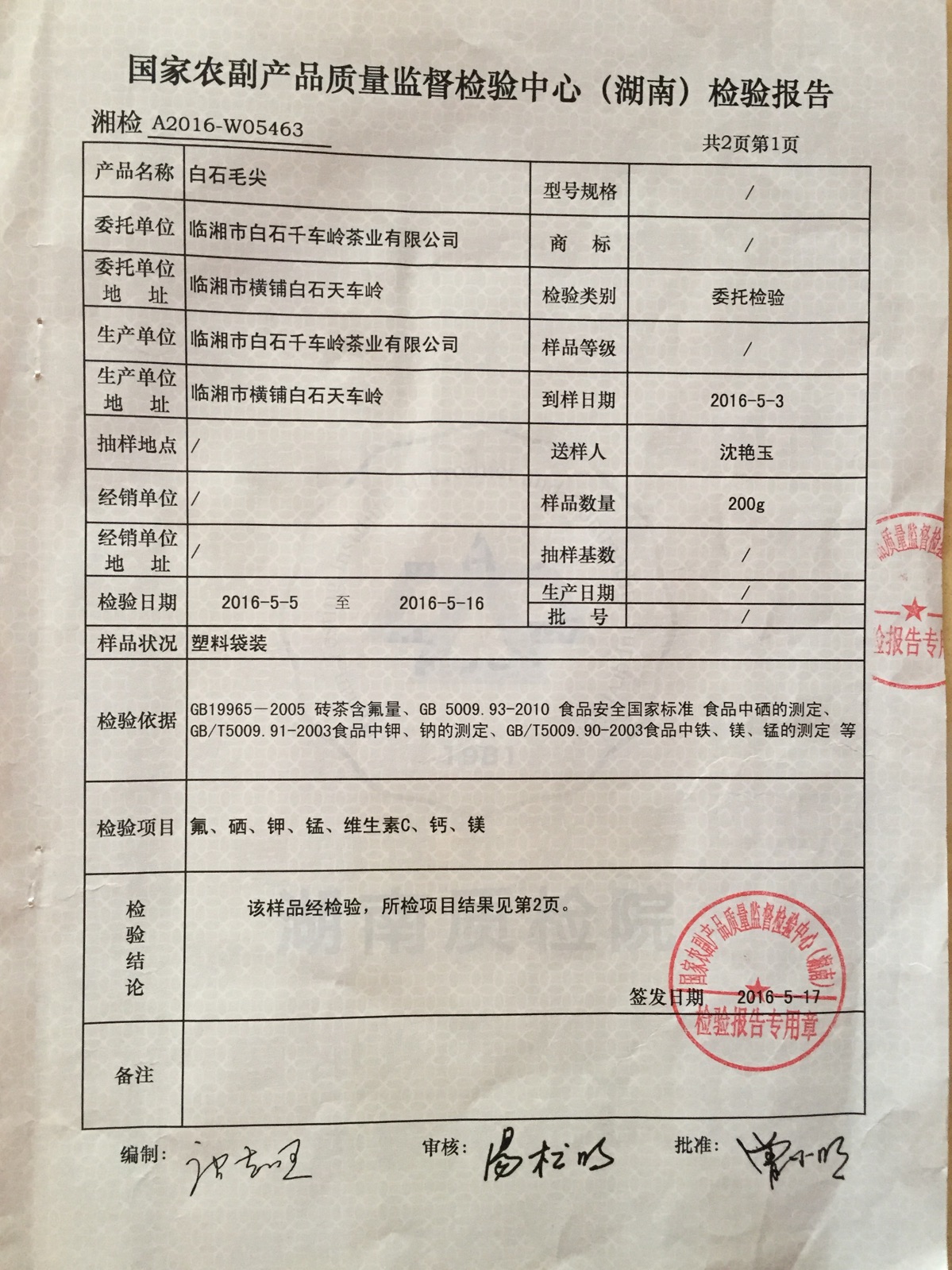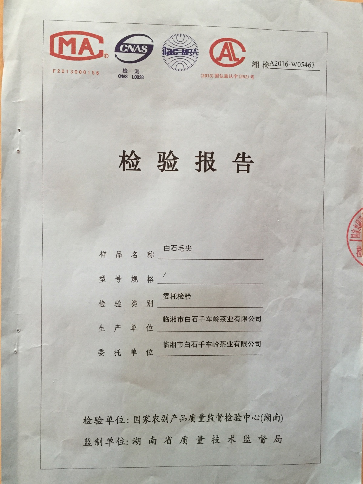 "天車嶺"白石綠茶,經(jīng)權威機構檢驗