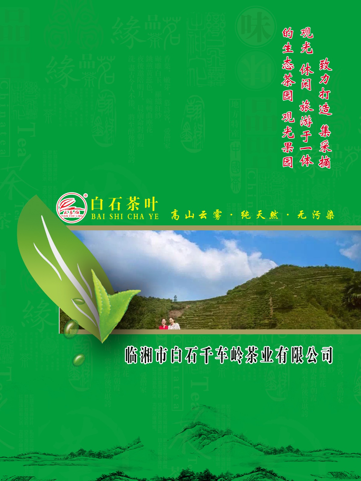 白石茶園是臨湘市白石千車嶺茶業(yè)有限公司的茶葉基地,該公司前身是白石園茶場,具有60年的產(chǎn)茶史。公司主要產(chǎn)品有:白石毛尖、白石綠茶(巖茶)、白石黃茶。2004年白石綠茶在中國湖南星沙首屆茶文化節(jié)評選活動中榮獲銀獎;1982年白石毛尖被評為湖南省八大名茶;1991年白石毛尖被評定為湖南茶十二大名茶之一;2015年、2016年參加第三屆、第四屆中國有機農(nóng)產(chǎn)品展銷會暨中國青(米)磚茶交易會獲金獎產(chǎn)品稱號;2016年"白石綠茶"又榮獲"中國風尚·最受歡迎茶品牌","天車嶺"注冊商標被評為湖南省著名商標。