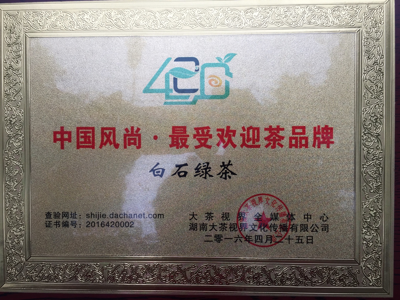 "天車嶺"白石綠茶獲最受歡迎的茶品牌