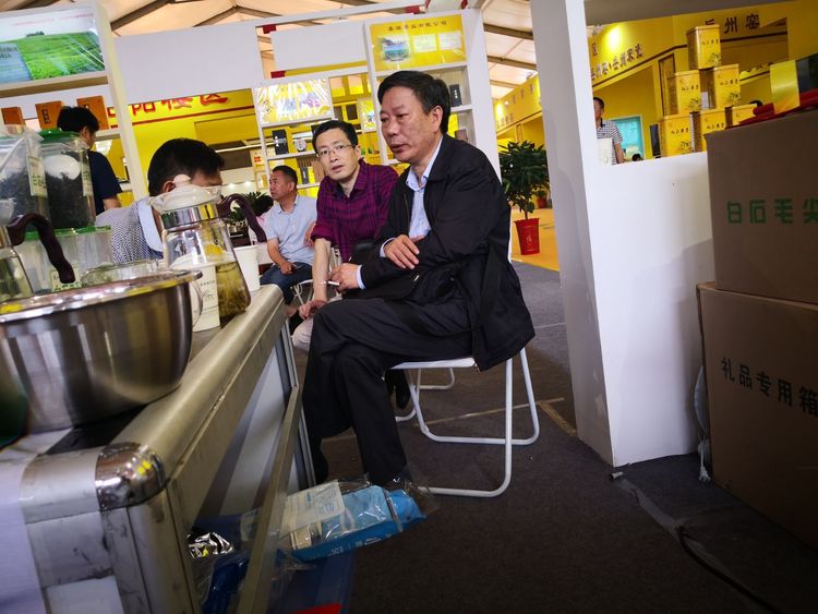 湖南省茶葉研究所所長、湖南省茶葉產(chǎn)業(yè)技術(shù)體系首席專家包小村,下午代表專家團隊推介臨湘茶產(chǎn)品,為此包所長親自來到展位,準(zhǔn)備第一手資料。從包所長的言談舉止中我們感受到了茶界大咖的風(fēng)范!