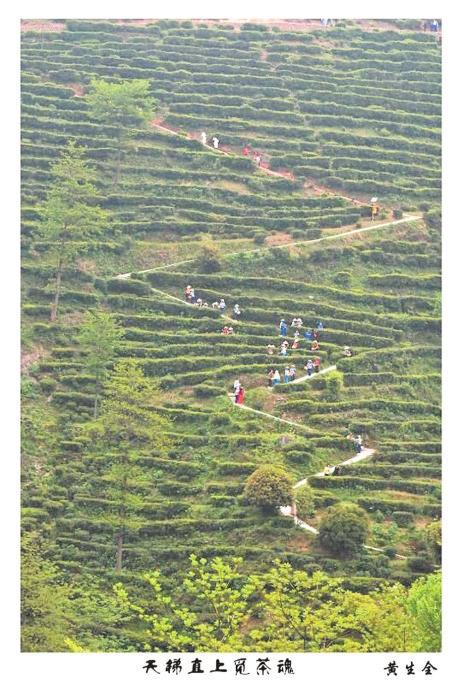 本報訊(記者 劉衍清 劉志恒)藍(lán)天碧云,春風(fēng)和熙。4月13日,來自岳陽市區(qū)以及臨湘市、岳陽縣的100多名中外攝友聚集臨湘市桃林鎮(zhèn)境內(nèi)的天車嶺,開展“白石毛尖——攝影之旅”采風(fēng)活動。市農(nóng)業(yè)農(nóng)村局、市茶產(chǎn)業(yè)辦、市茶葉協(xié)會以及臨湘市、桃林鎮(zhèn)等相關(guān)部門領(lǐng)導(dǎo)參加開拍儀式,現(xiàn)場觀摩的社會各界茶友達(dá)400多人,包括應(yīng)市茶產(chǎn)業(yè)辦邀請前來白石茶業(yè)參觀的外國愛茶人。臨湘市白石茶場毗鄰五尖山的天車嶺,是擁有60多年歷史的老茶場,上世紀(jì)八十年代白石毛尖曾名列湖南八大名 茶。目前1500多畝茶園分布在平均海拔400至500米呈梯田形的高山巖坡上,宛如一條條綠色的緞條環(huán)繞在層巒疊嶂之 中,自然景觀秀美。白石茶業(yè)舉辦這次攝影采風(fēng)活動,旨在向社會各界展示白石毛尖、白石黃茶等系列原生態(tài)茶葉的生長環(huán)境和傳統(tǒng)制作工藝,為做大做強(qiáng)岳陽黃茶產(chǎn)業(yè)增光添彩。參加“白石毛尖——攝影之旅”采風(fēng)活動的100多名攝影師,大都是從事專業(yè)和業(yè)余攝影數(shù)十年、經(jīng)驗豐富的攝影老將,其中僅先后擔(dān)任過岳陽市攝影家協(xié)會副主席以上的國家級攝影家就有10多名,年過七旬的汪培康不僅是參與創(chuàng)建岳陽市攝影家協(xié)會并蟬聯(lián)一、二、三屆會長的老攝影家,又是白石茶場所在地桃林鎮(zhèn)人,這次來家鄉(xiāng)參加活動, 心情十分高興。他端著相機(jī)沿著又長又陡的羊腸小道登上山頭,拍攝美不勝收的茶山風(fēng)光。參加攝影現(xiàn)場抓拍活動的還有愛好攝影的企業(yè)家。中國管理科學(xué)研究院學(xué)術(shù)委員、快購快送網(wǎng)絡(luò)科技創(chuàng)始人、董事長錢前除參加現(xiàn)場抓拍采茶鏡頭外還賦詩二首,詩云:五尖山黛綠,千壑嶺高深。玉女趁朝露,清風(fēng)戀晚春。紅云生紫氣,白石盡黃金……知名畫家、茶人李水生還當(dāng)場揮毫潑墨,創(chuàng)作了《天車嶺上白石茶》的中國畫,贈送白石茶業(yè)。來自哥倫比亞和法國的外國愛茶人杰瑞與愛米麗也應(yīng)市茶產(chǎn)業(yè)辦邀請,興致勃勃地觀摩了“白石毛尖——攝影之旅”采風(fēng)活動,并連連稱贊產(chǎn)于巖石縫中的白石毛尖不愧為純天然、原生態(tài)的岳陽名茶。臨湘市職業(yè)高中的30多位學(xué)生身著采茶服參加了白石茶園采茶體驗活動。