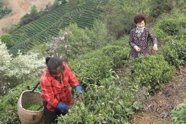 年年歲歲茶相似,今歲采茶大不同。由于受去冬今春突發(fā)新冠肺炎疫情的影響,疫情尚未劃上句號,使得今年來茶園采風旅游的發(fā)燒友杳無蹤影。茶山清靜得只聽到清脆宛轉(zhuǎn)的鳥聲和從竹林中吹來的颯颯風聲。我沿著去年走過的茶山小徑,一邊慢悠悠地走著,一邊搜索拍攝采茶的角度。去年的采風活動事先都有預(yù)案,隨便找些采茶的大嫂小姑就能給你當一回“群眾演員",何況還有不少自告奮勇當"義務(wù)模特“的靚女俊男。今年可不同了,上茶山的都是附近就地打工的村民,上山之前必須規(guī)規(guī)矩矩測體溫,采摘茶葉的人群也要分散作業(yè),不能象往年一樣三五成群,一邊采茶,一邊湊到一塊聊這聊那。也好,不耽誤采茶的功夫,只是我的鏡頭就只能拍攝"單兵作戰(zhàn)"了。