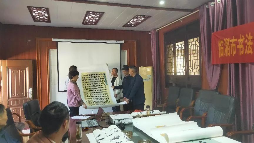 10月30日上午,臨湘市書法家協(xié)會組織創(chuàng)作骨干和黨員代表,開展書法藝術進企業(yè),為白石茶產(chǎn)業(yè)發(fā)展助力加油?;顒佑墒形穆?lián)黨組成員、副主席,書協(xié)黨支部副書記姚湘北主持,在熱烈而溫馨、輕松且愉悅的氣氛中進行。