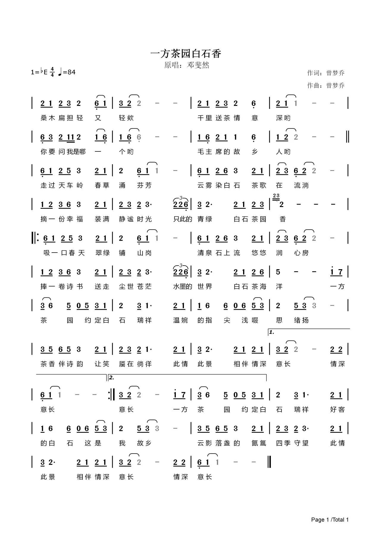 《一方茶園白石香》不僅是一首贊美家鄉(xiāng)白石茶園的歌曲,更是曾夢喬老師以公益之心,對家鄉(xiāng)深厚情感的抒發(fā)與寄托。歌詞中,每一句都蘊含著豐富的意象與深厚的情感,讓人仿佛置身于那片云霧繚繞、茶香四溢的茶園之中。