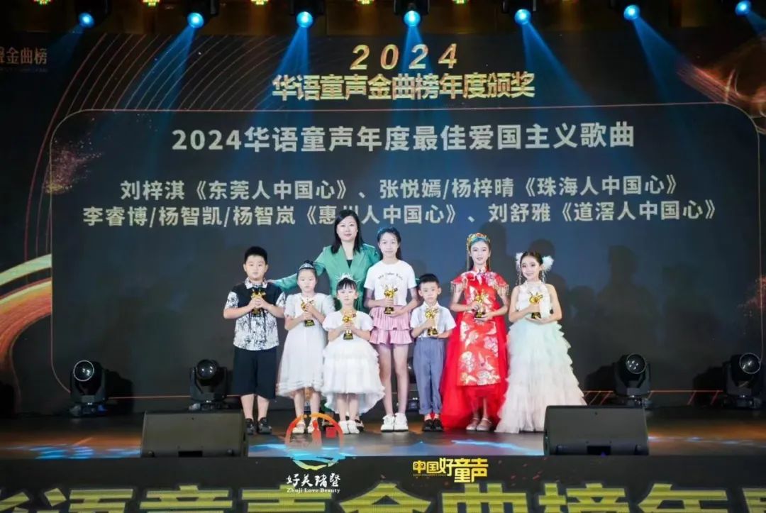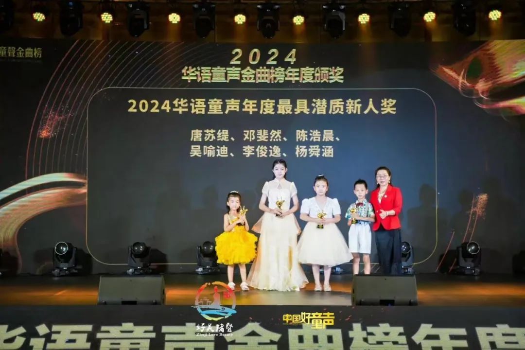 《一片竹林聲聲慢》原創(chuàng)歌手沈昕桐(左2)在2024年華語(yǔ)童聲金曲榜年度十大小歌手頒獎(jiǎng)合影