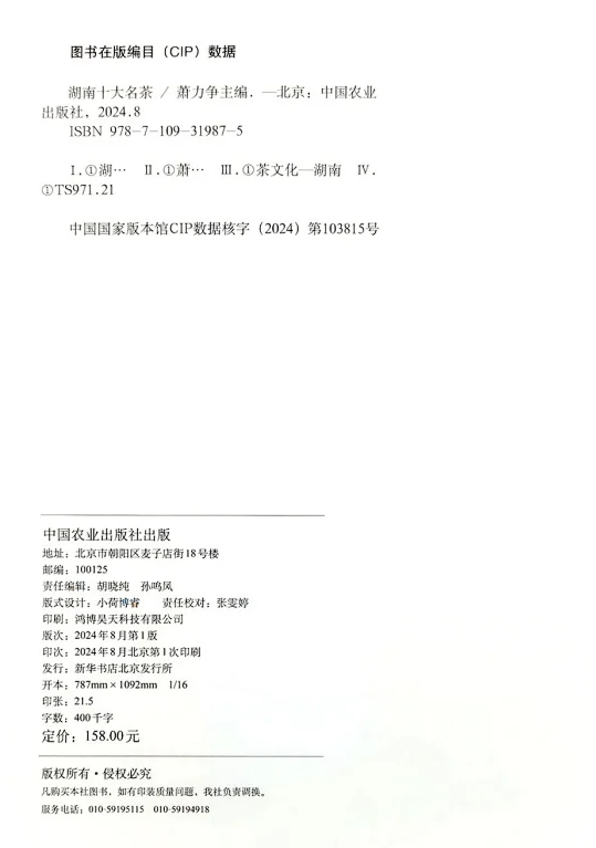 上圖:《湖南十大名茶》版權(quán)頁