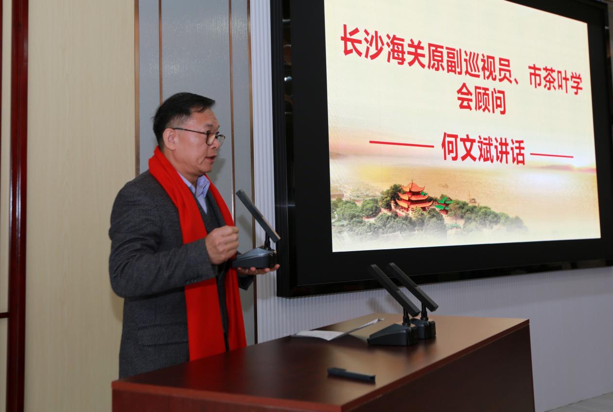 第七項議程:湖南省茶葉研究所原所長、岳陽市國茗黃茶研究院院長包小村主講《以茶為主,多種經(jīng)營》。第八項議程:岳陽市人大常委會原主任、市茶葉協(xié)會顧問陳志剛主任,長沙海關(guān)原副巡視員、湖南省資深茶葉專家、市茶葉學(xué)會顧問何文斌,岳陽市供銷合作聯(lián)社黨委委員、監(jiān)事會副主任鄒變龍講話。第九項議程:岳陽市農(nóng)業(yè)農(nóng)村局三級調(diào)研員陳紹祥講話會議議程結(jié)束后,與會人員在白石茶業(yè)展廳門前合影留念。