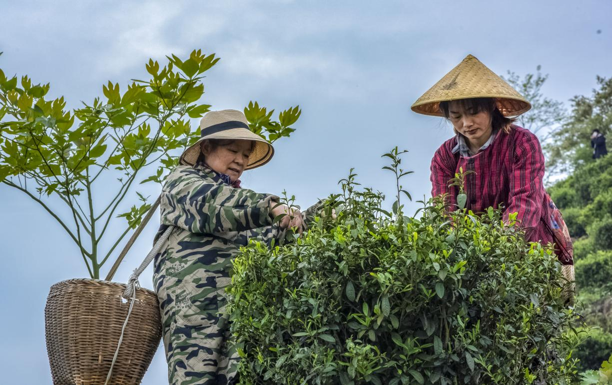 連綿起伏的茶園里,茶農(nóng)李冬榮干勁十足,早上六點(diǎn)就來(lái)采摘了,只見(jiàn)她嫻熟地將一片片鮮嫩的茶葉摘下,茶簍里便漸漸鋪起一層層嫩綠。一上午的時(shí)間,她就采下了4斤多的茶葉,按采摘量來(lái)算工費(fèi),一芽一葉的是25元一斤,算下來(lái)半天就能賺將近100元?!翱隙ǖ?,吃完飯繼續(xù)摘,多的時(shí)候一天收入能有200多元?!北粏?wèn)及下午是否還摘,李冬榮笑著說(shuō)。