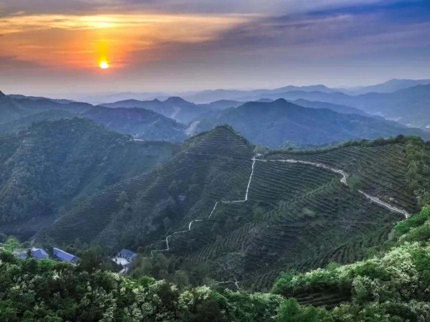 茶園由數(shù)十個(gè)大小山頭組成,全部是一行行的梯地,垂直高度數(shù)十至數(shù)百米,橫向伸延幾千米,形似廣西的“龍脊梯田”。茶山有步行游覽的棧道,拾級(jí)而上,漫山綠意涌入眼簾,縷縷茶香撲面而來(lái),還有粉紅色的桃花、櫻花,紫色的藤蘿,與綠色交相輝映。登山遠(yuǎn)眺,茶園梯田錯(cuò)落有致、一覽無(wú)遺,如詩(shī)如畫(huà)的美景,令人心曠神怡。